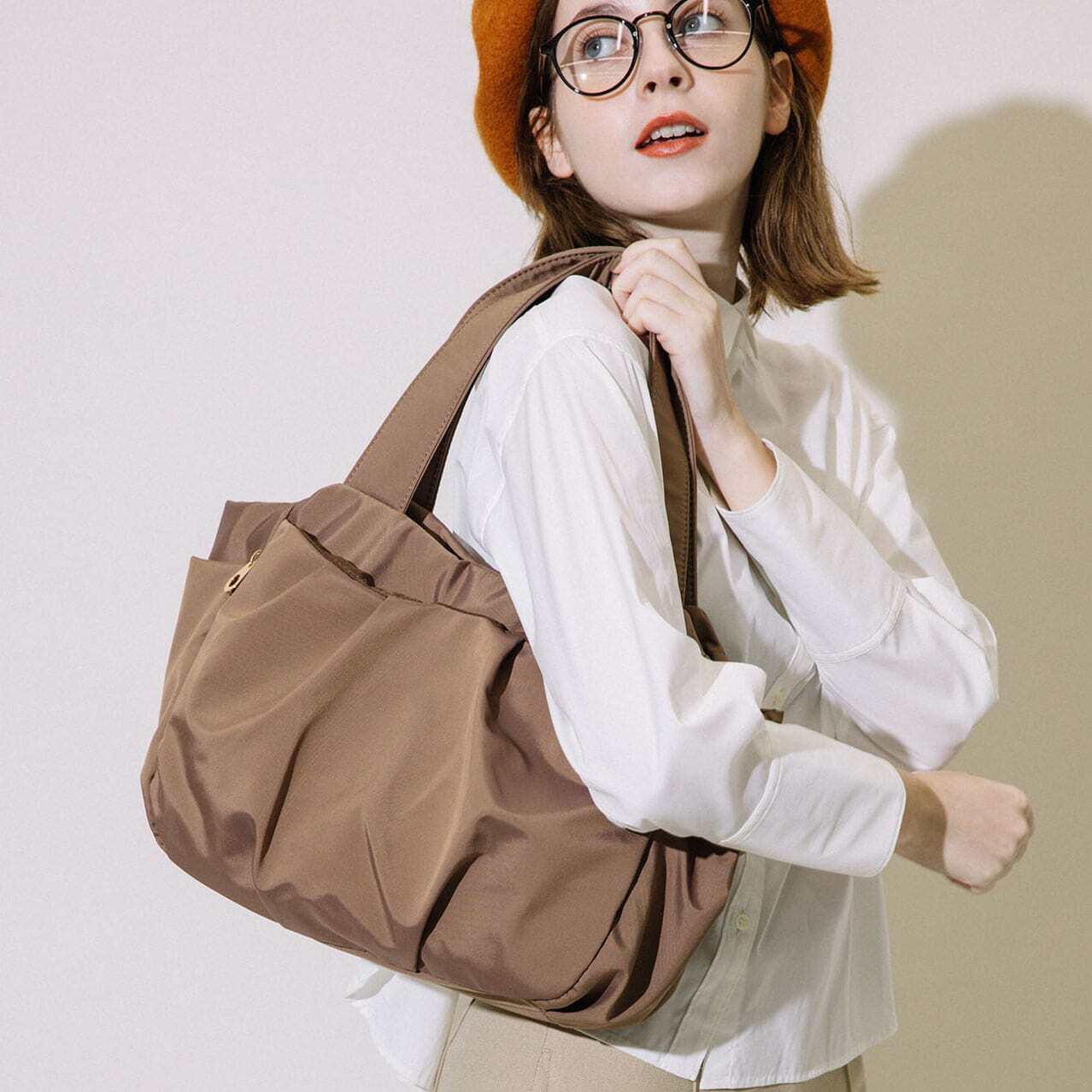 丸みのあるふっくらとしたシルエットが女性らしいトートバッグ。