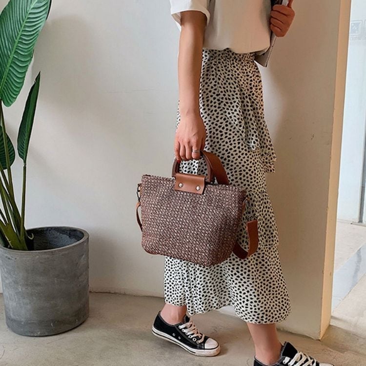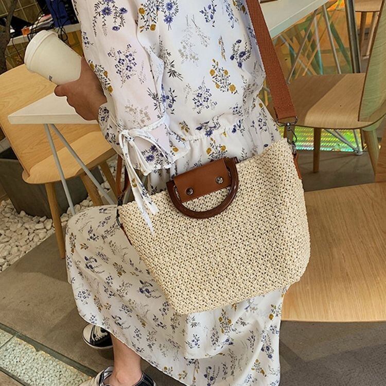 丁寧に編み込んだオシャレなかごショルダーバッグ。